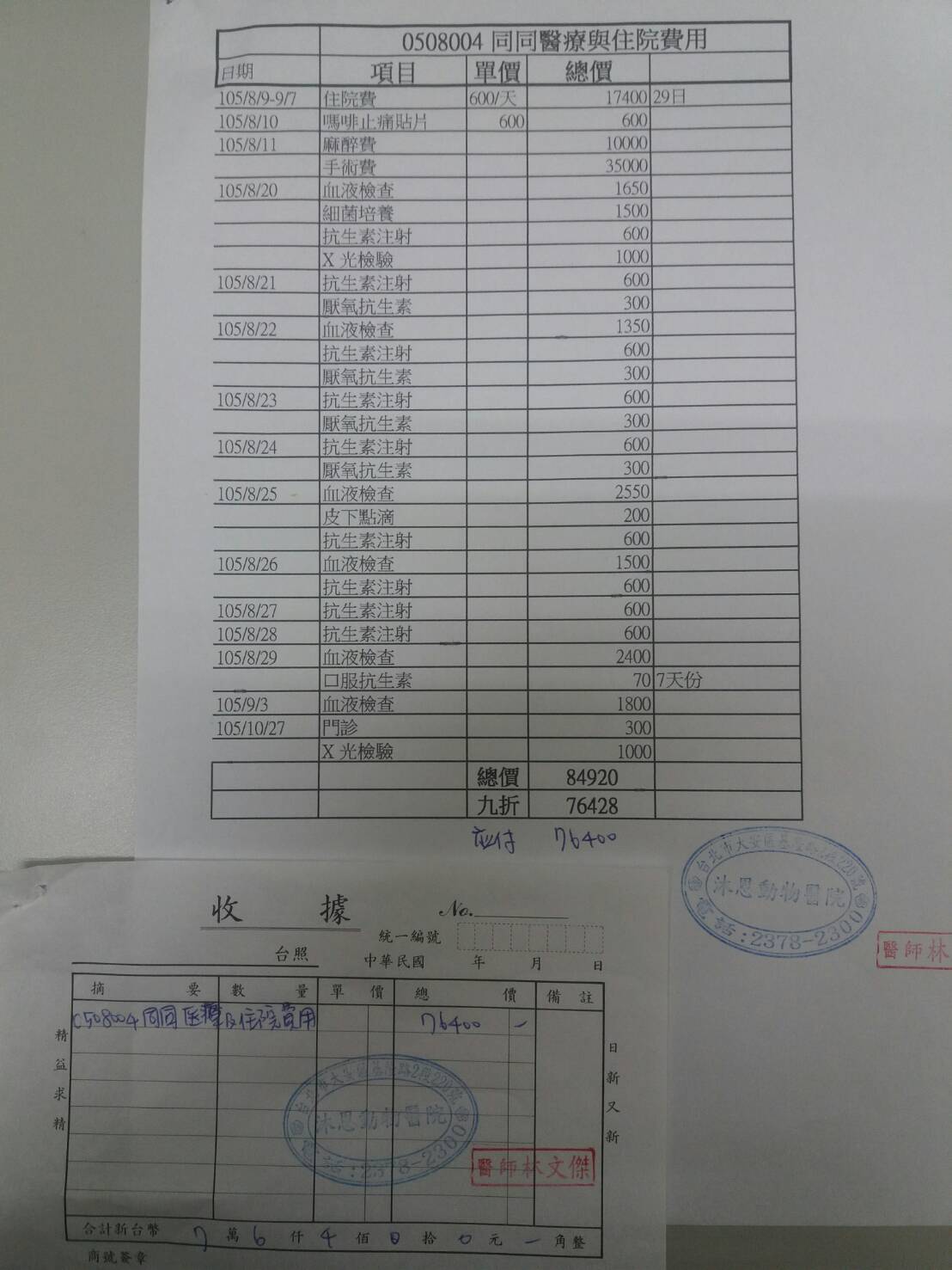 住院費及診療手術費部分,還需要大家多多幫忙了