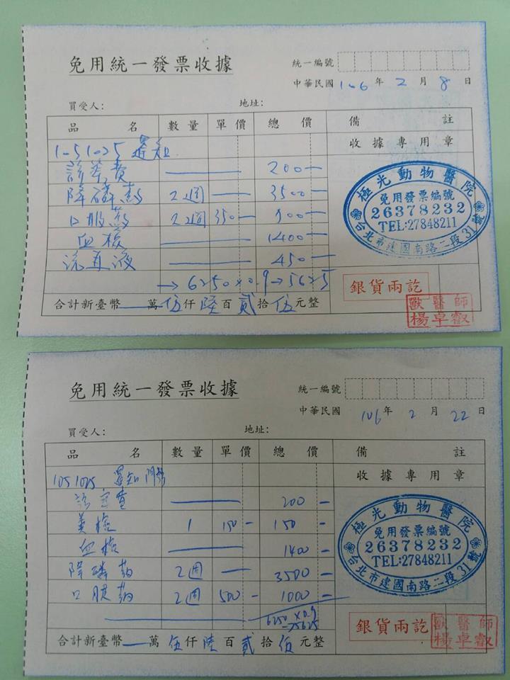 暹知腎指數又飆高了,磷指數也還是很高,醫生建議罐頭要給腎處方罐頭,如果他不吃,那至少三種口味裡有一種腎處方,另一種KITI CAT4號 沙丁魚口味,反正要選磷低的就對了,打水改為乳酸林格液,打水量增加為早75ML晚100ML,上呼吸道感染有改善,但建議離感冒貓遠一點(例如CALL ME),以免快好了又被傳染,另外此次血檢紅血球指數有上升,所以造血針可以不用打了。