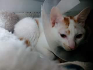 需在次開刀將增生的壞死皮膚清除。加上需高劑量的抗生素跟類固醇來控制細箘侵入。終於在針劑的控制下傷口好轉壞死皮膚也逐漸脫落看到健康的皮膚。米可的醫藥費需要大姐姐大哥哥們幫忙。米可也會乖乖讓自己健康長大。謝謝動物近況說明: 米可很乖有吃醫生阿姨指定過敏的飯飯。米可要健康長大雖然我很皮但我很愛撒嬌。米可正在快速恢復中。。加油。