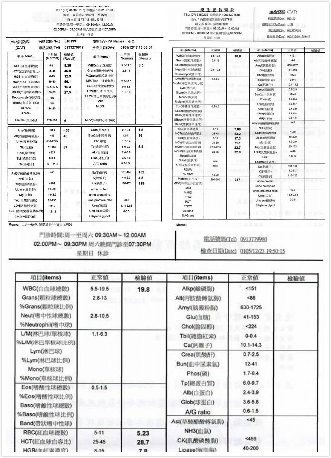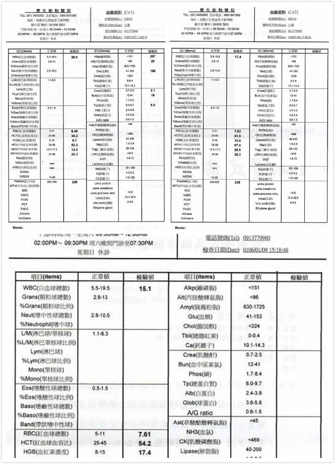 今天過去看小黃~聽醫生說小黃這兩天都沒吃~雖然開了罐頭但都全都吐出來~醫生猜測可能感冒~但為了安全還是有先抽血做檢查了~因為醫生在忙~所以報告還沒出來還沒看~