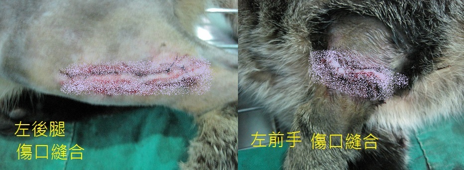 2/18手術,原以為只有後腳受傷,但檢視後前手也有水平傷口