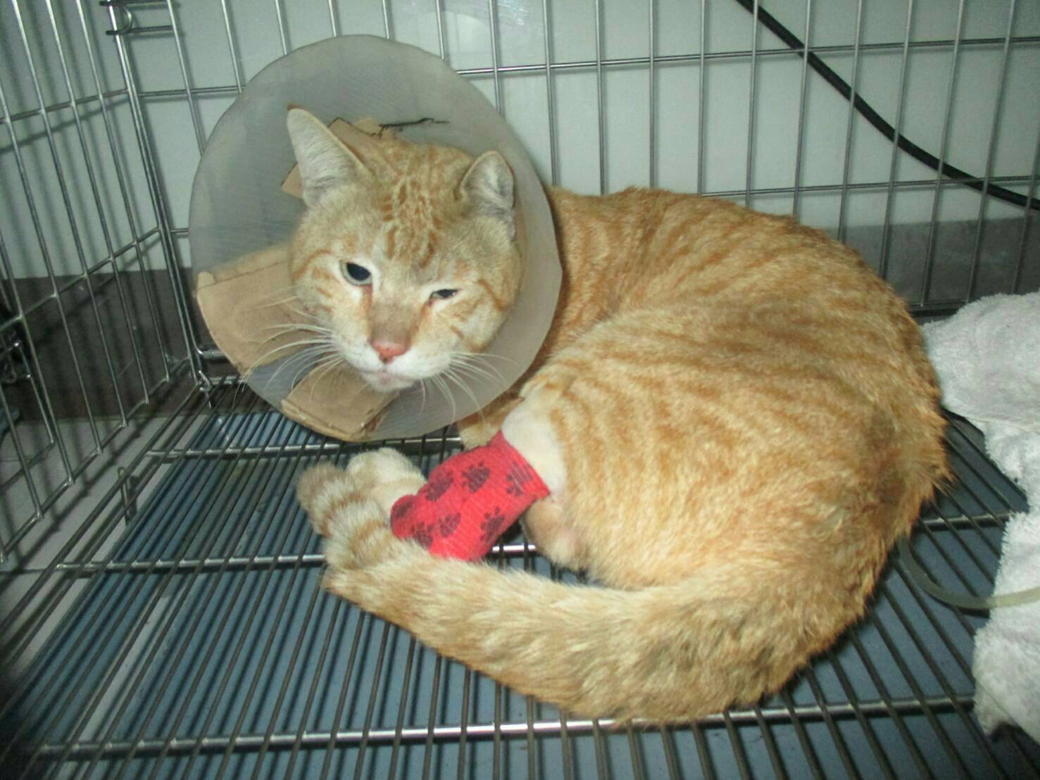 扣除自付額,需35100元動物近況說明: 經半個多月住院休養,前腳傷口復原良好。