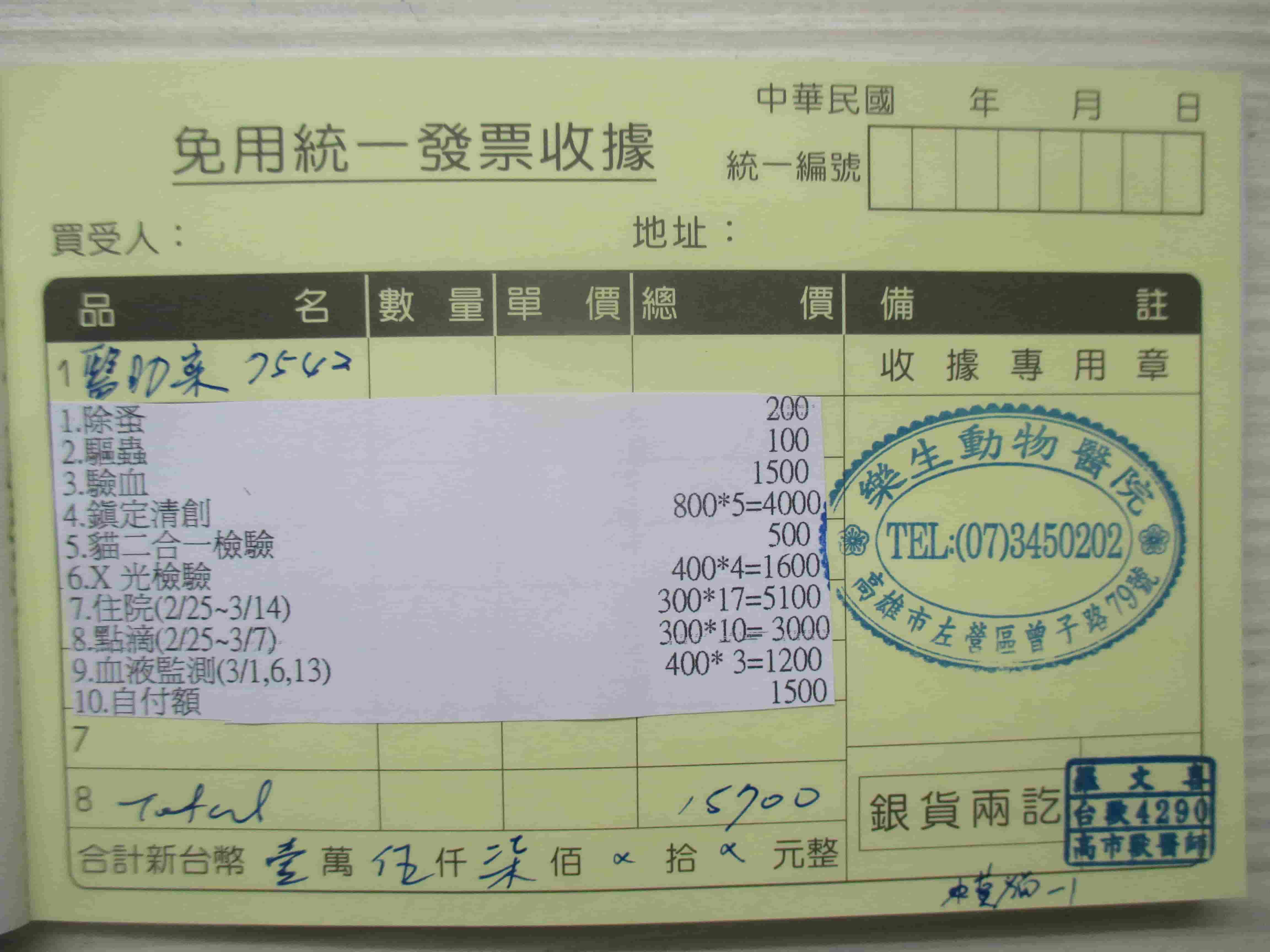 治療費用細項,見收據照片。