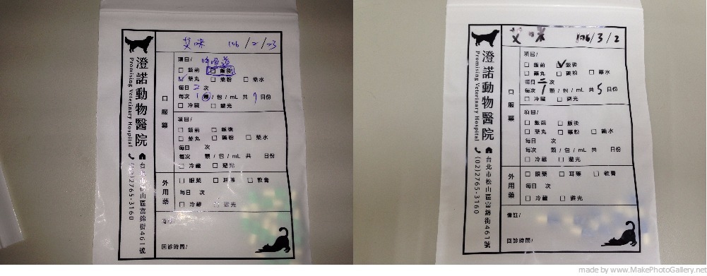 故在誤食一周後再帶至動物醫院醫治,以下為就診紀錄: