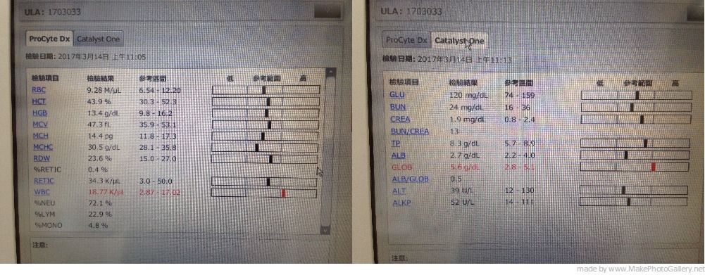 唯獨白血病的指數較高(18000,正常在17000以下)