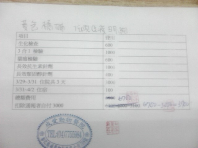 3/29入院,院方給予點滴補充水份,並注射長效抗生素以及長效類固醇針劑。