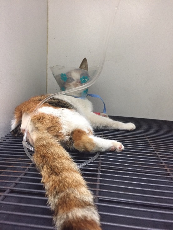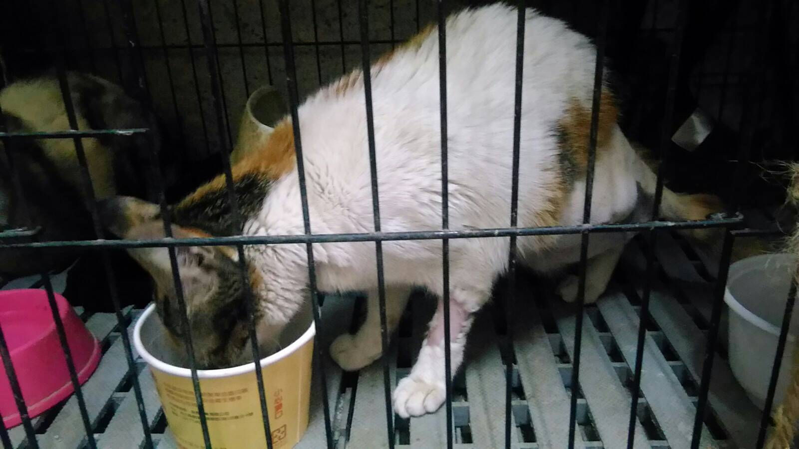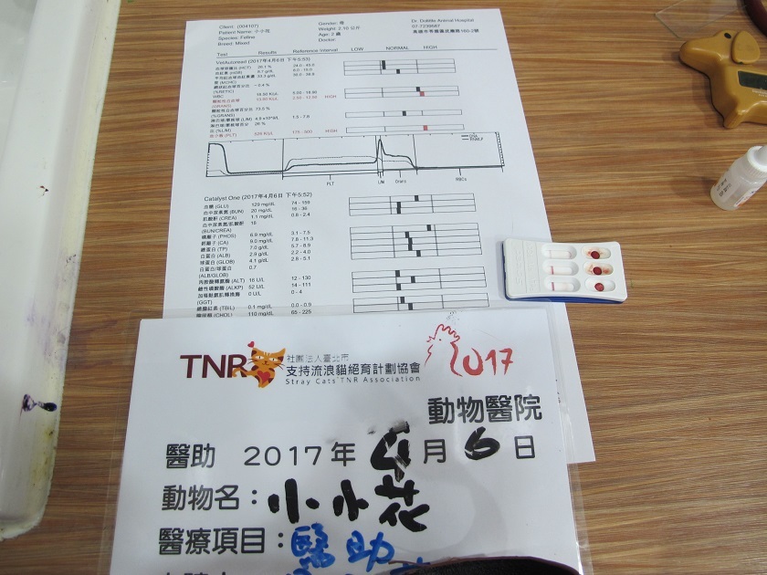 除周日醫院休假外都有前往隨時關心小小花現況,目前小小花恢復情況良好,將陪她靜待她習慣三隻腳的生活起居。動物近況說明: 小小花於4/6引產並結紮,休息一天於4/8作截肢手術,於4/18上午拆線,當天晚上帶回,小小花很愛討摸摸,大小便正常,也很能吃,希望早點把她養胖,她真的很瘦小,因為家裡已經有九隻陸續收養的浪貓,對新成員蠻不友善,所以小小花目前還關籠隔離中,另幫她正式取名為"楚楚",因為好瘦小又缺一隻腳楚楚可憐的。感謝貴單位對這些小可憐們的幫助,很多生命因此得救,真的很偉大^^~