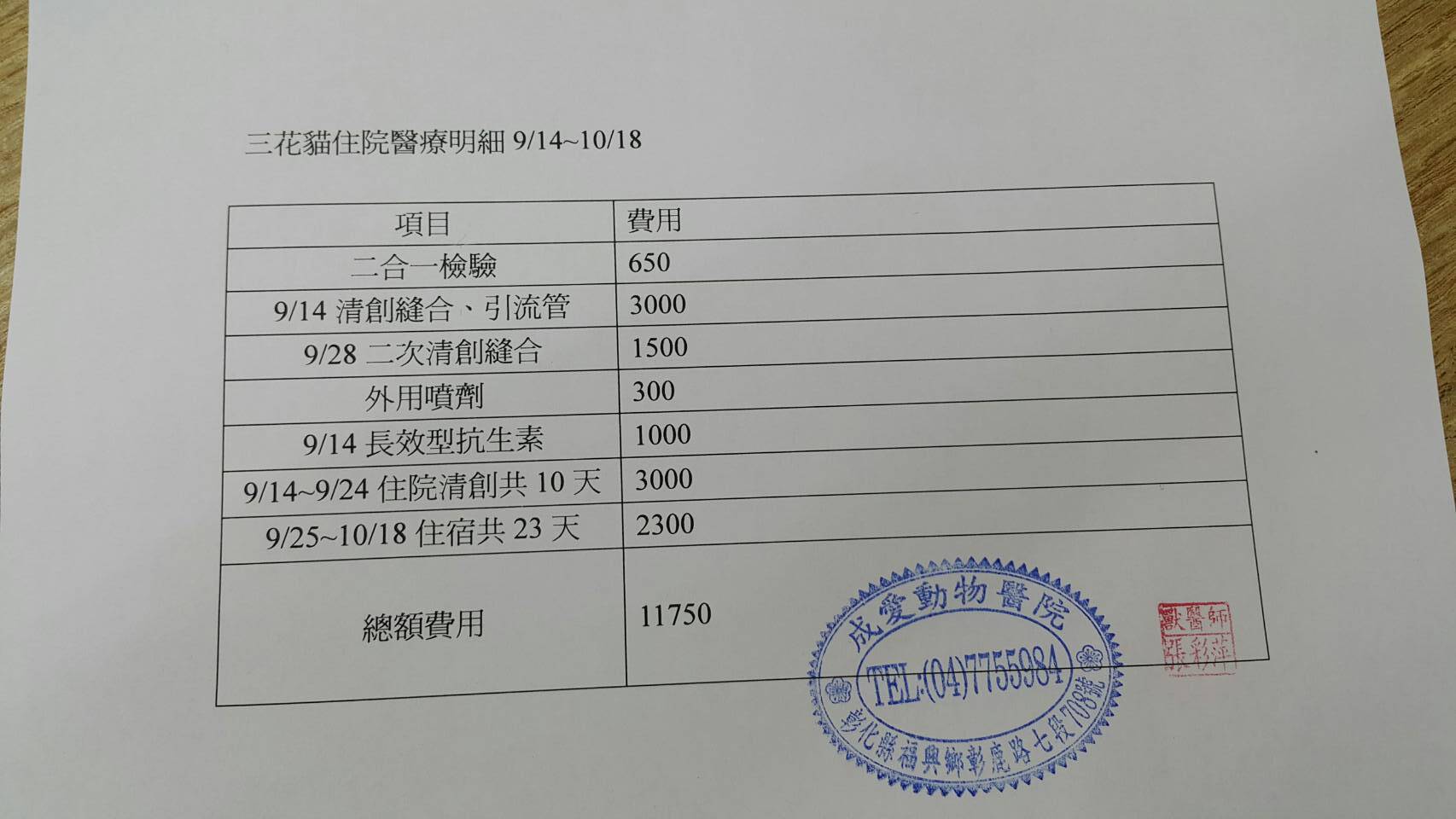 主題: 哺乳中遭野狗咬傷摘除乳腺的阿花 申請者姓名: 蔡佳晏 花色: 申請日期: 2017-04-11 11:00:52 申請者部落格: 申請者臉書網址: 所在縣市/合作醫院: 彰化縣/成愛動物醫院 治療費用: 10750元 需求人數: 23人 已結案 (2024-06-01 13:30:09) 報名人員: Wanchun Huang(已付款)、ERic YU(已付款)、光(已付款)、岑(已付款)、SilviaJ(已付款)、yangmimi x2(已付款)、Jocelyn Liu(已付款)、樹下的紅果實(已付款)、Ming Yi Inc. x2(已付款)、lulumi x2(已付款)、林波 x2(已付款)、可樂 x2、iamdavidga x2(已付款)、Ying(已付款)、Elaine x2(已付款)、潘潘(已付款)、vivian(已付款)、肚臍(已付款)、 候補人員: 動物病情說明: 阿花是鹿港的阿婆固定餵養的街貓之ㄧ,