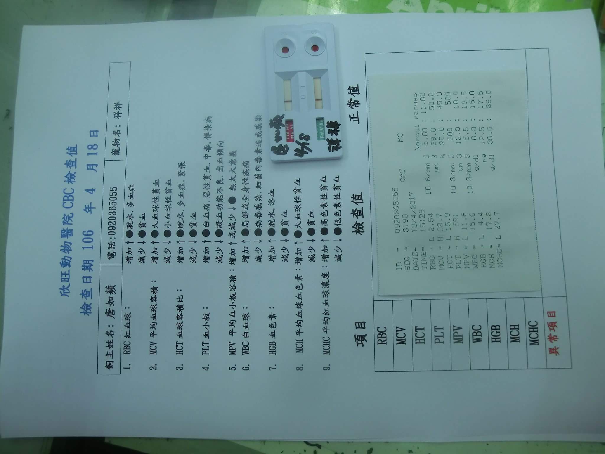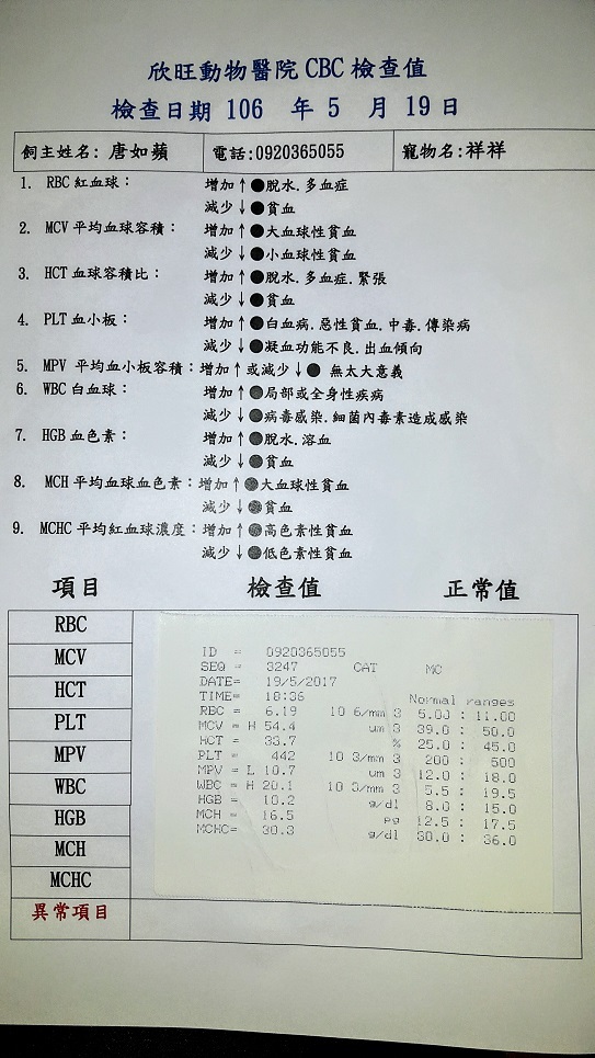 治療四周後醫師血檢說祥祥指數都回到正常值內可以出院了
