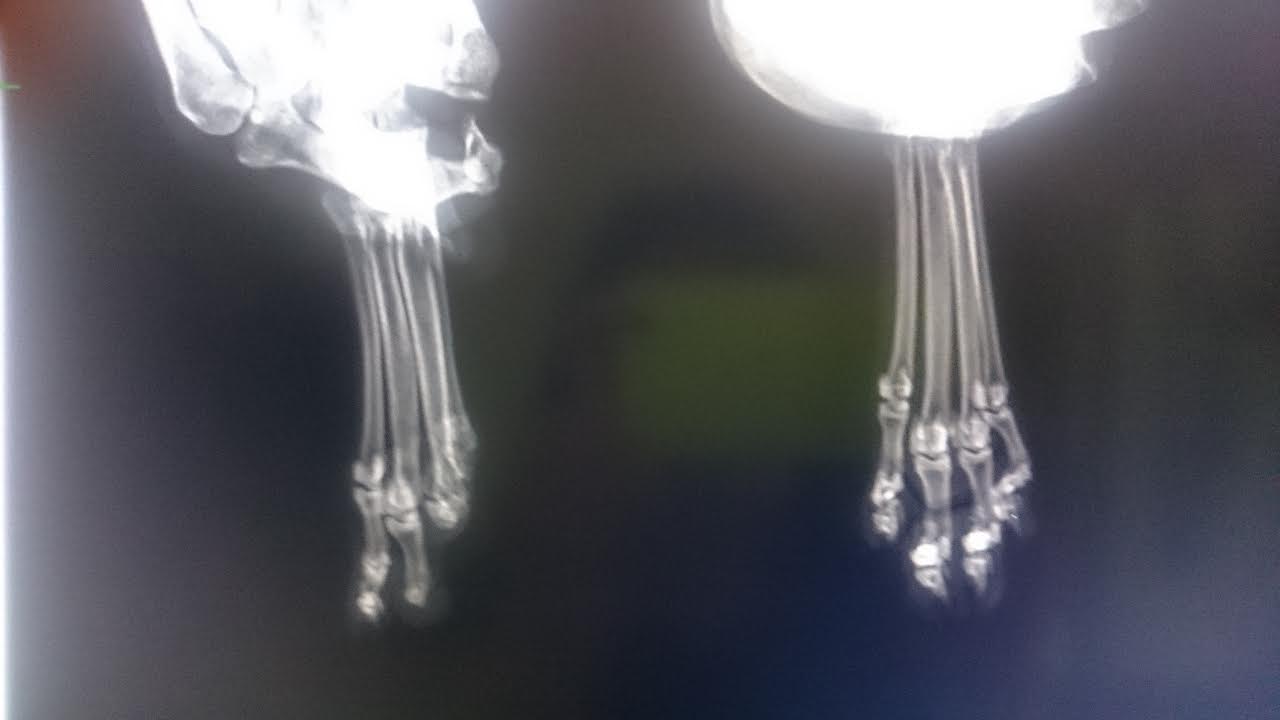 鐵蛋帶著腳傷徘徊在路邊流浪,