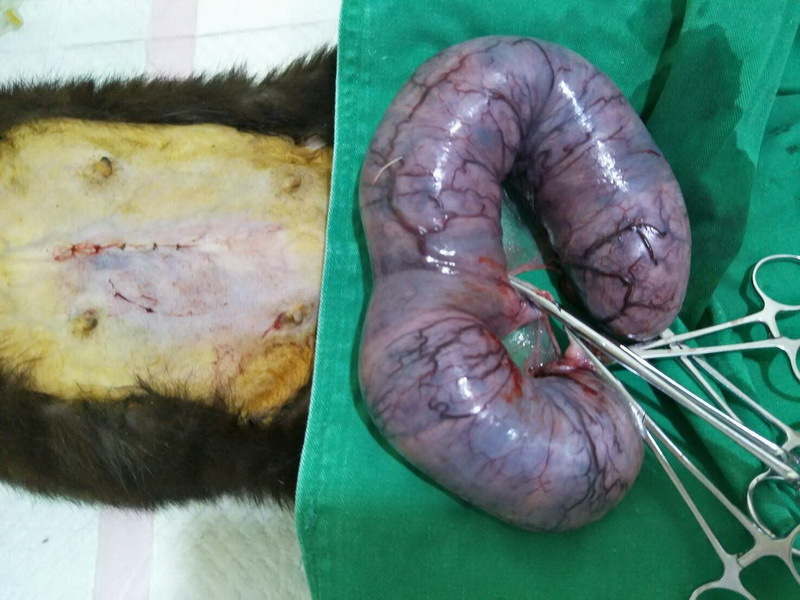 黑媽主要狀況是嚴重的貧血,腎衰竭,白血球很高,呼吸道感染,肚子方面從X光來看因為在腹腔內有團塊 ,原本懷疑有腫瘤或是子宮蓄膿,可是後來掃超音波發現原來是胚胎,但懷孕只會讓黑媽這些問題更嚴重,所以先等狀況穩定一點才能手術,而且他貧血很嚴重,甚至有可能要輸血,要趕快去找血了!動物近況說明: 黑媽住院期間狀況一直都不是很好,由於她懷孕導致她的嚴重貧血和腎衰竭更嚴重,加上她過瘦,所以必須先將她的體重和貧血狀況給穩住了才能做引產手術,期間醫生有打補血劑和加上帶去的營養品,好不容易有穩住黑媽的狀況,在5月2日時做了引產手術,做完手術後我有帶些補品曲給黑媽,希望手術部會讓他的狀況變不好,經過幾天觀察,醫生說黑媽的腎衰竭確定是永久的了,而她也不太能自行造血,所以我接回家安寧照顧時,每天都要打200西西的皮下點滴,而每禮拜就要去醫院打一劑造血針,目前黑媽一個人獨自在個人房裡,我暫時關她,想說讓她先適應一下家裡,雖然她很兇不親人,但這幾天用浴巾包裹她打皮下狀況都還算穩定,這次很謝謝小新動物醫院鐘醫師和助理們的幫忙照顧,黑媽的醫療費用還望大家多多幫忙,謝謝!