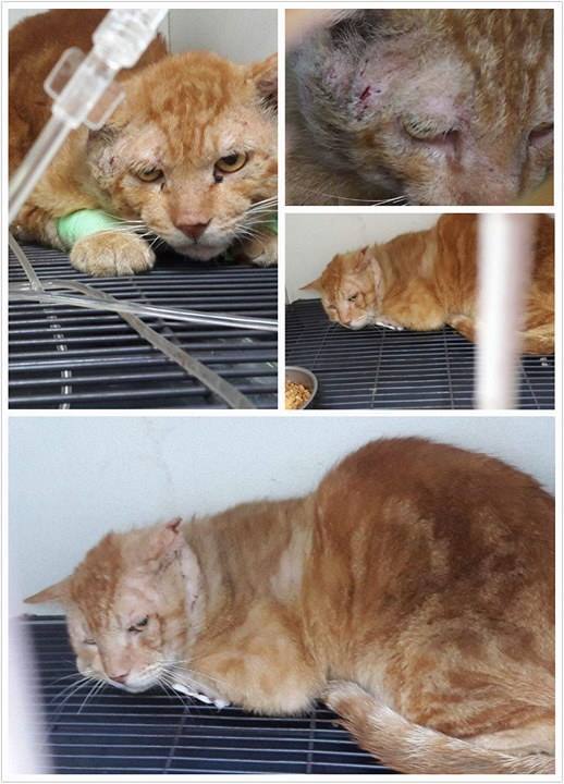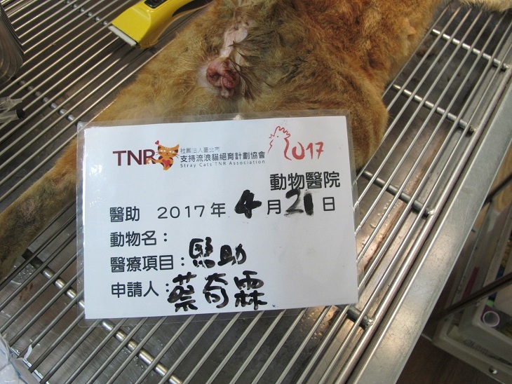今天過去了解一下橘貓傷口恢復的狀況~~醫生說傷口恢復的還不錯~傷口範圍有在縮小~昨天也把傷口部分做一下縫合~~讓傷口可以更快復合~~因為之前傷口太大沒辦法做縫合~~這傷口應該是打架造成的傷口~後來越來越大~~也後來因為傷口肉芽增生~~