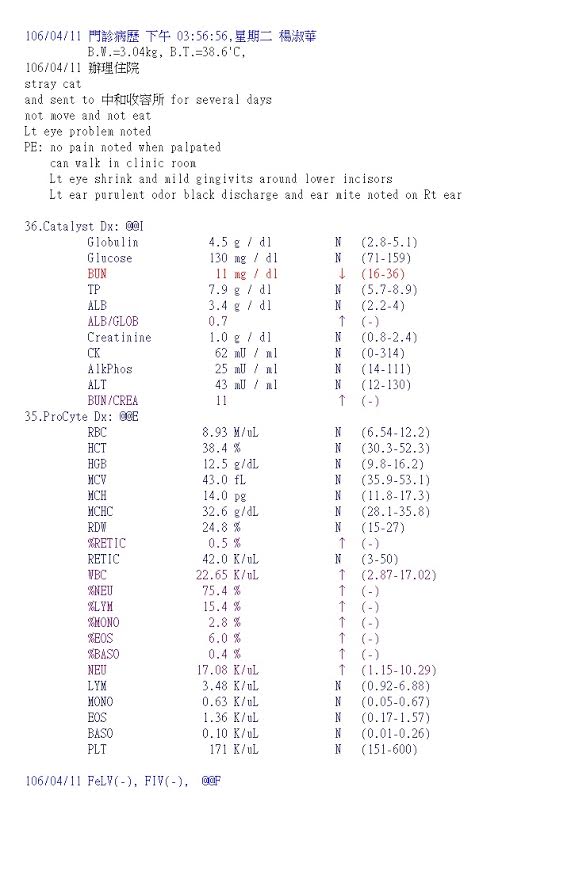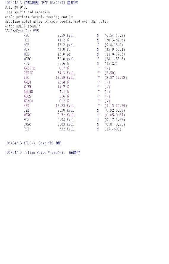 但卻有弱陽性的貓瘟,於是在緊急轉診至有較大隔離房的醫院