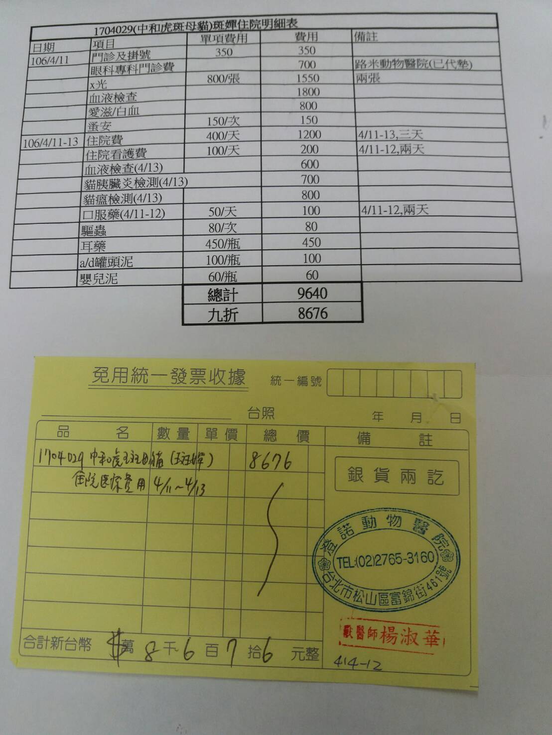 本次醫療費包含4/11掛診以及4/11-4/13住院期間所給予的醫療及照護