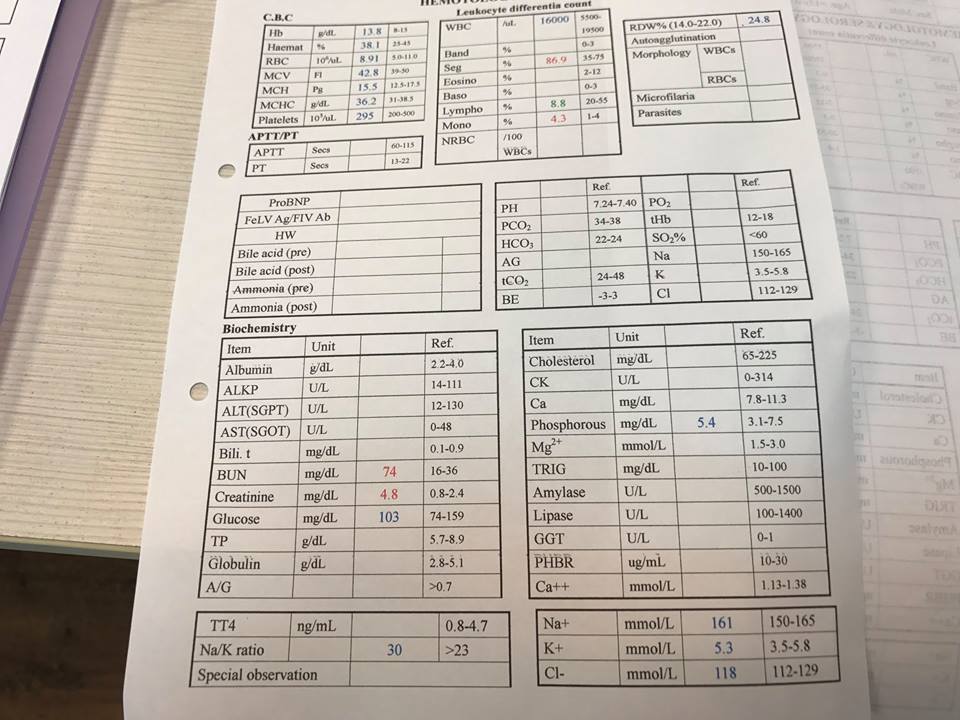 救援後發現貓咪有慢性腎病、還有血巴東蟲引起溶血問題,