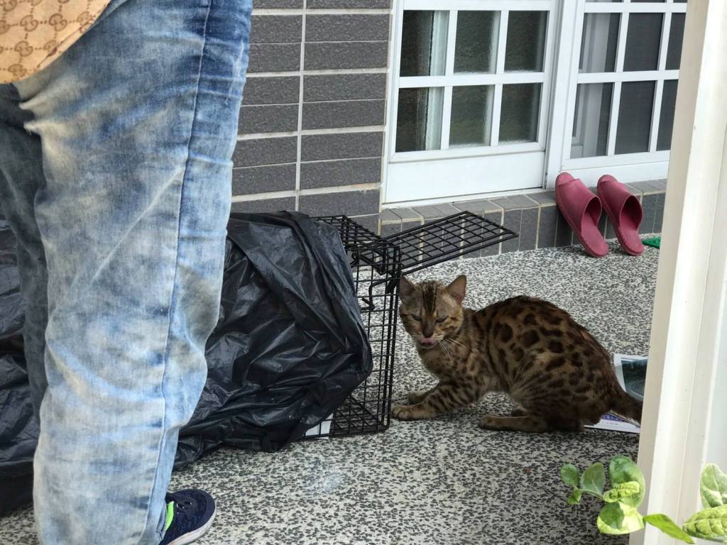 在高雄美濃老家院子出現一隻毛色特別的豹貓,