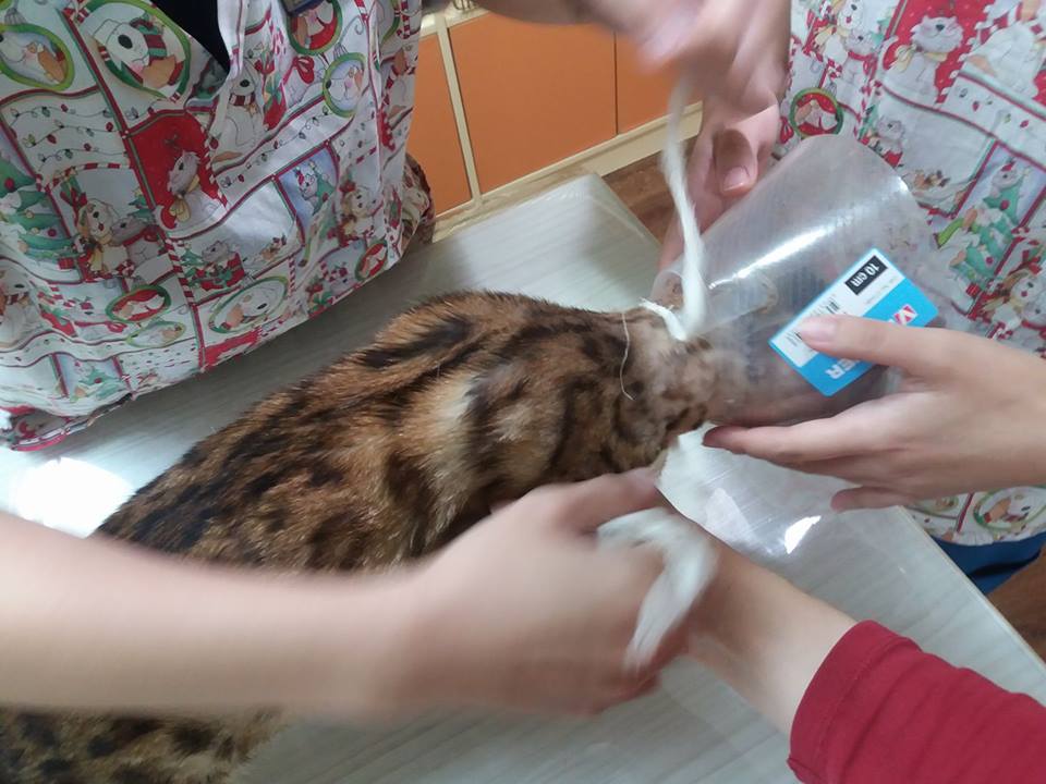 豹貓原先有耳疥並且耳朵髒,治療後,