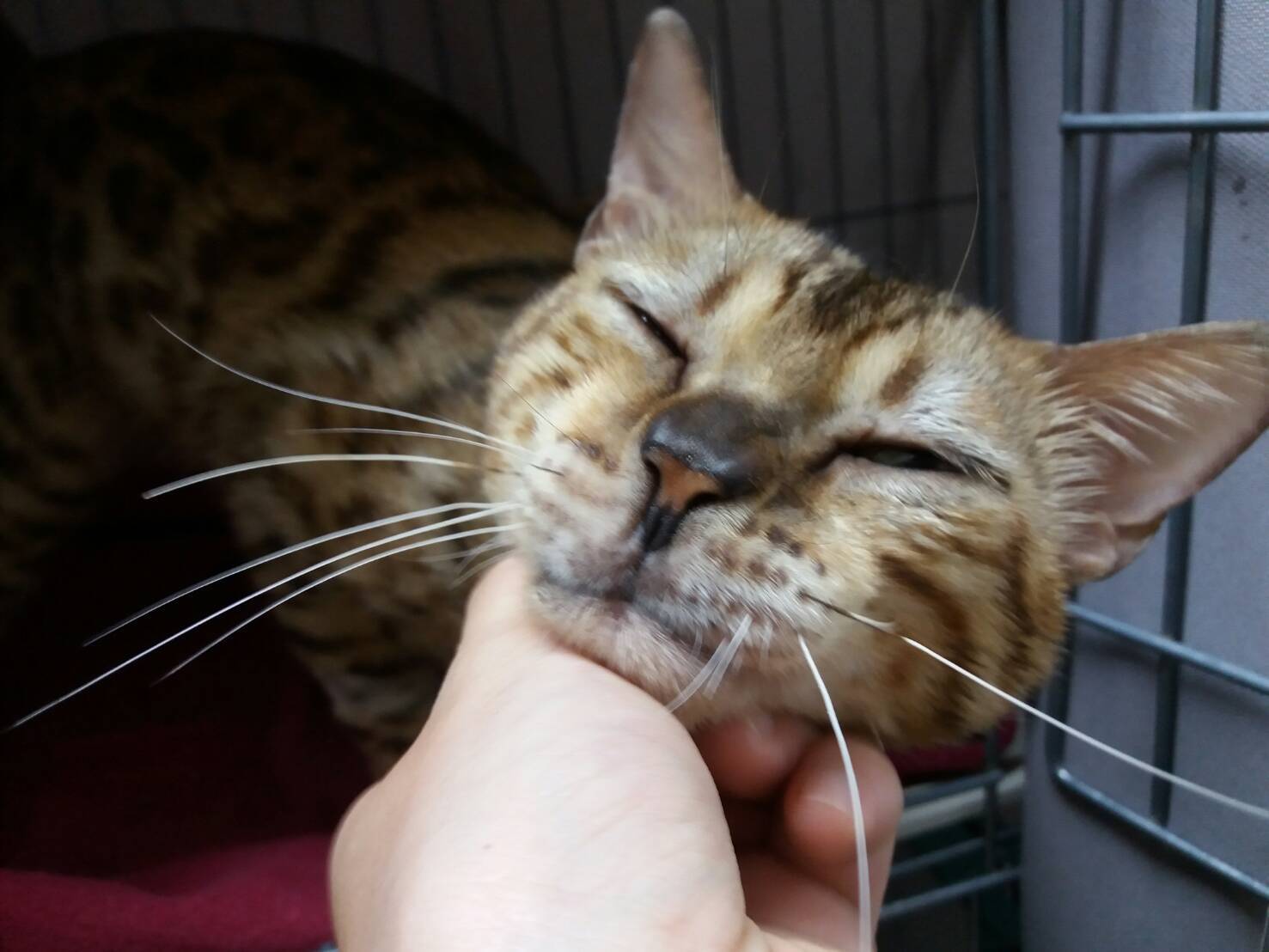 他就趕快把小手手收起來,用頭稍為摩蹭著籠門撒嬌