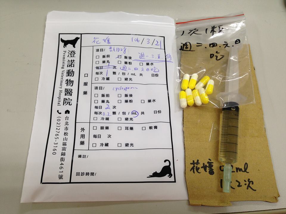2.免疫抑制劑每日早晚各一次,每次0.2ML可抽出後灌在空膠囊中餵食