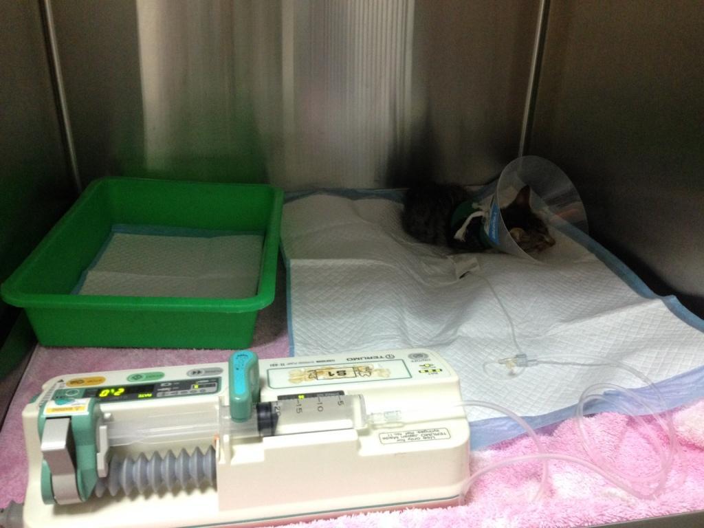 除了每日進行的噴霧治療,還須搭配灌食以及保溫