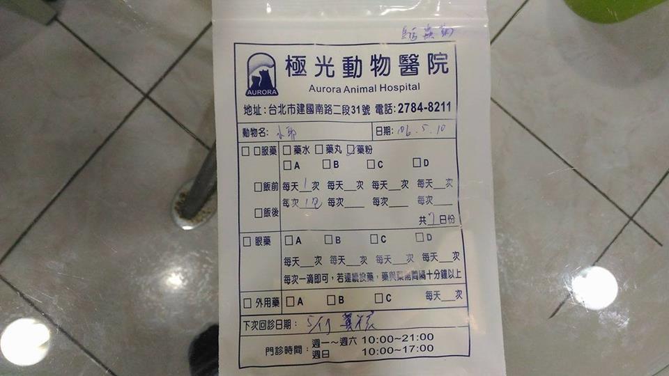 原先5/3的回診要替乖耶施打驅蟲針,但由於太過緊張且糞檢中無活蟲