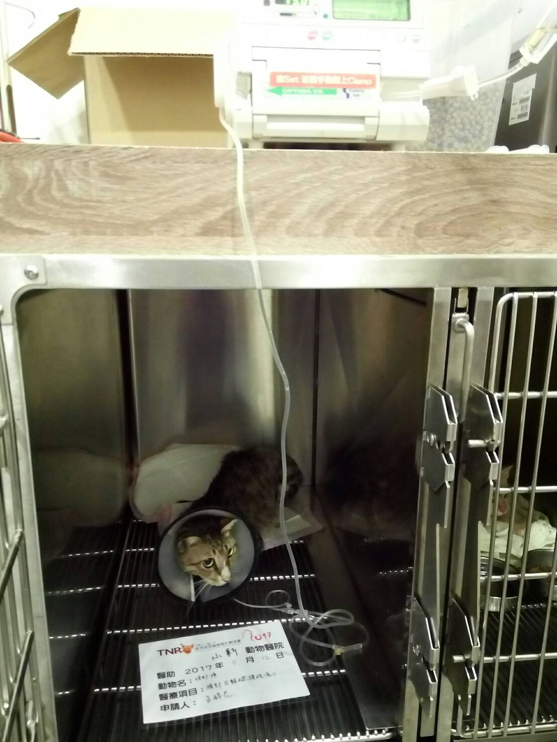 主題: 尼龍繩貓 申請者姓名: 呂錦花 花色: 申請日期: 2017-06-28 11:45:34 申請者部落格: 申請者臉書網址: 所在縣市/合作醫院: 高雄市/小新動物醫院 治療費用: 18000元 需求人數: 39人 已結案 (2024-06-01 13:28:09) 報名人員: Winny x2(已付款)、Eric Wang x2(已付款)、Fish x2(已付款)、HSU OG(已付款)、洪晟聞(已付款)、薇薇安(已付款)、Chia-Hung Ma x3(已付款)、寧(已付款)、幸福媽 x2(已付款)、Aki Chang(已付款)、Elaine Lin(已付款)、Jenny Dong x2、張婷婷 x2(已付款)、Lily Huang x2(已付款)、陳又嘉 x2(已付款)、老楊(已付款)、Lannie(已付款)、misselaine(已付款)、May x4(已付款)、Monica Wang(已付款)、maggie lin(已付款)、masae(已付款)、丁丁 x2、丁丁 x2(已付款)、Forest(已付款)、Jeane Tuan(已付款)、GHRS(已付款)、Vicky Tung(已付款)、 候補人員: 動物病情說明: 這隻貓咪在最近突然出現在李媽的餵養區域,因為都很晚出現,在加上貓咪怕人,常常躲在車下或陰暗處,一剛開始沒有發現....後來發現貓咪的肚肚怪怪時,想盡辦法去確認狀況,趕緊想辦法抓貓,因貓咪個性謹慎.公園的貓咪又愛進去誘捕籠裡偷吃罐罐,花了不少的時間誘捕,所幸後來貓咪還是忍不了香味被誘捕籠抓了~ 動物近況說明: 經過了醫師.助理們的細心照顧之下,貓咪的傷口癒合的非常好。但是愛媽考慮貓咪是外來貓,剛來公園覓食不久,加上公園的貓不少,它又住院許久,擔心現在野放貓咪居於弱勢,會比較吃不到東西。所以暫時先住愛媽家一段時間喔。