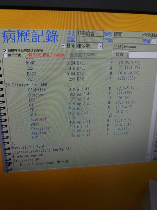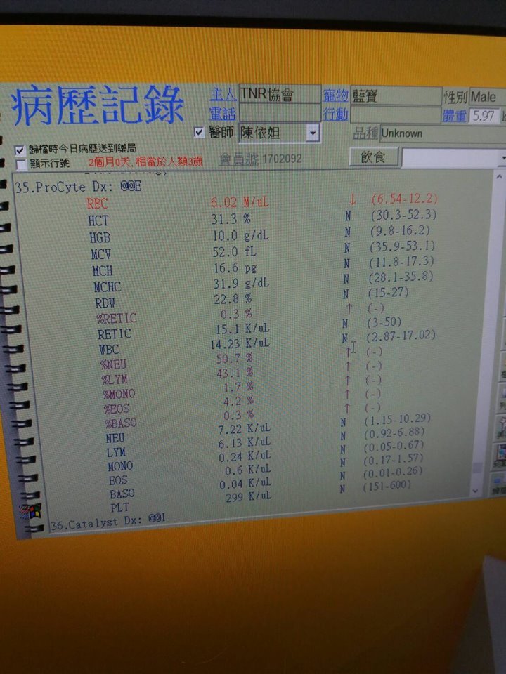 藍寶因食慾突然下降,加開食慾促進劑以及灌食後,