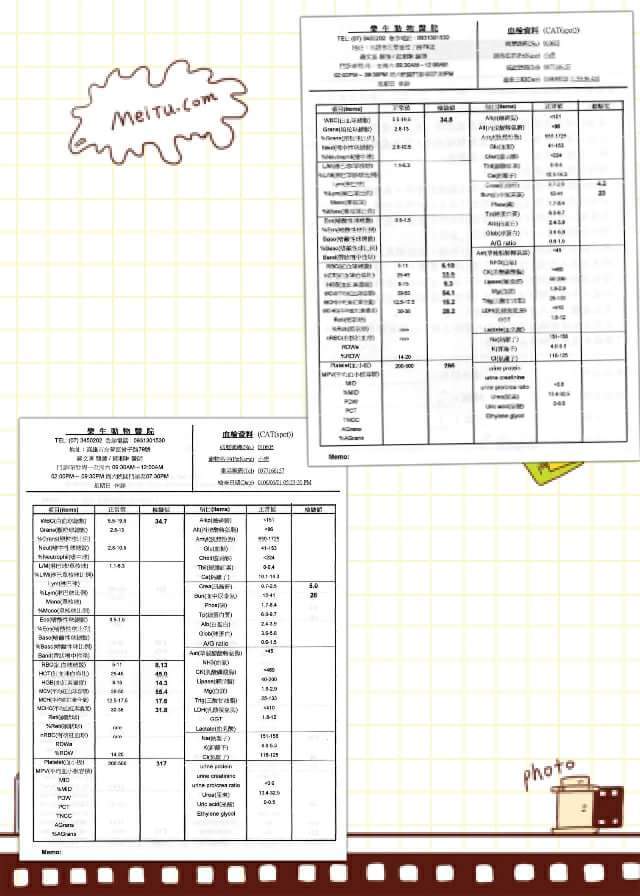 小虎有打喷涕輕微鼻氣管炎且有 口炎及嚴重牙結石,驗血二合一檢驗,貓愛滋陽性,有脫水且腎指數過高,鉀離子過低 ,白血球略高目前已先給藥及輸液治療,待腎指數下降,狀況穩定後會安排氣麻洗牙及拔牙,費用如下: