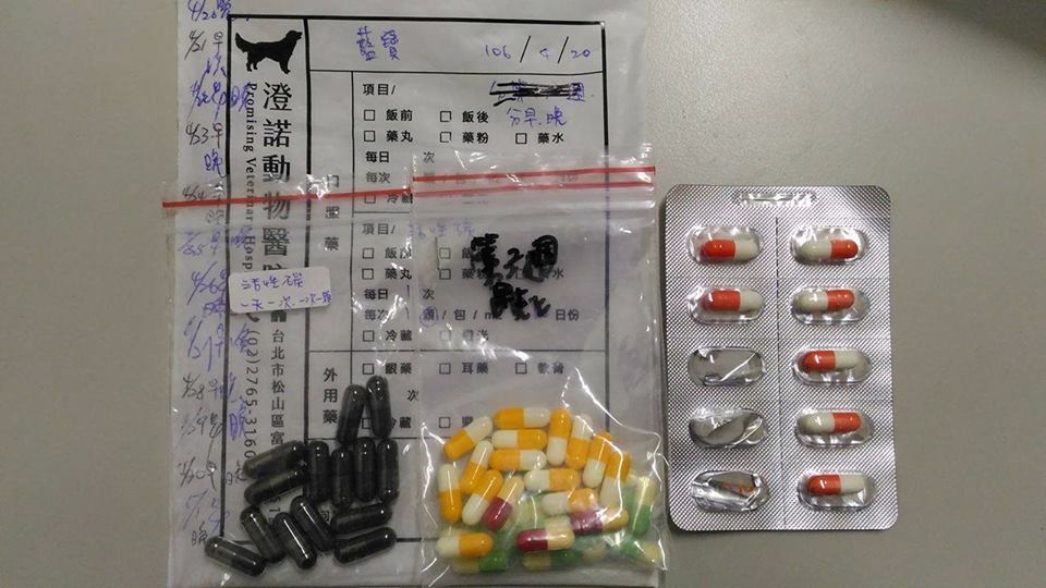並於5/16決定,雖然藍寶發炎狀況不嚴重,但仍然吃回抗生素,並增加B群及嘗試魚油