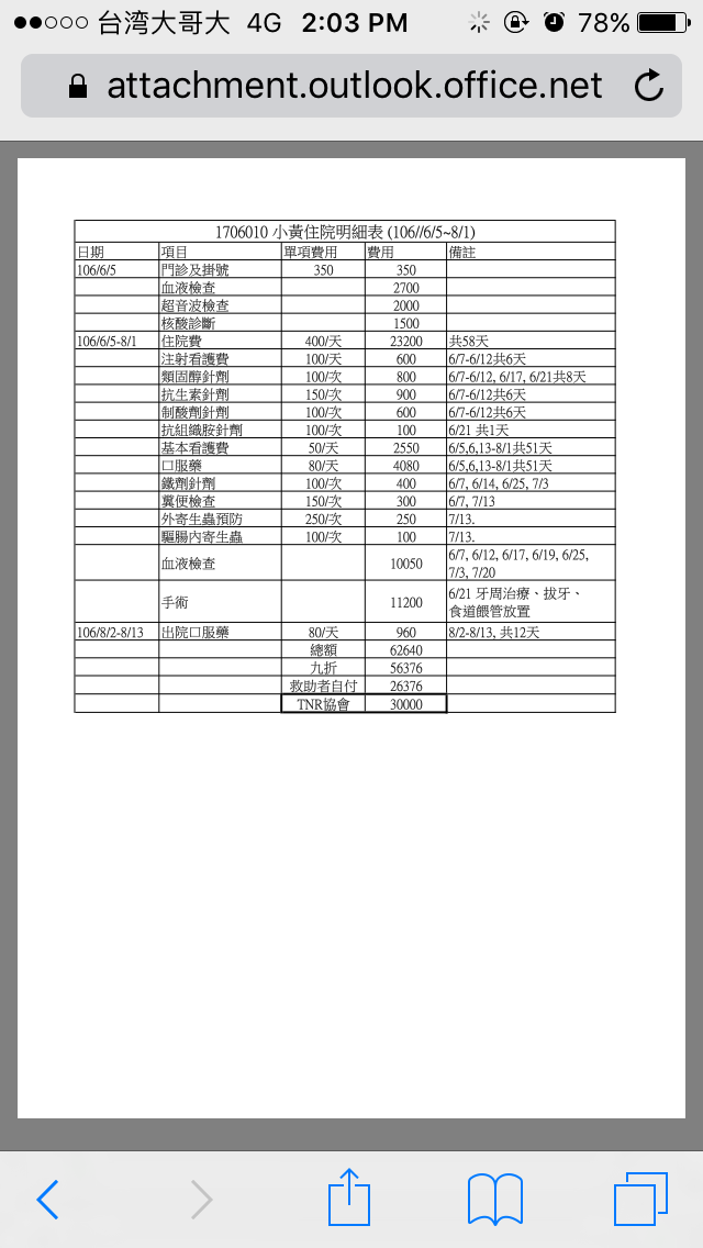 也感謝TNR協會的醫助方案減輕了我的負擔