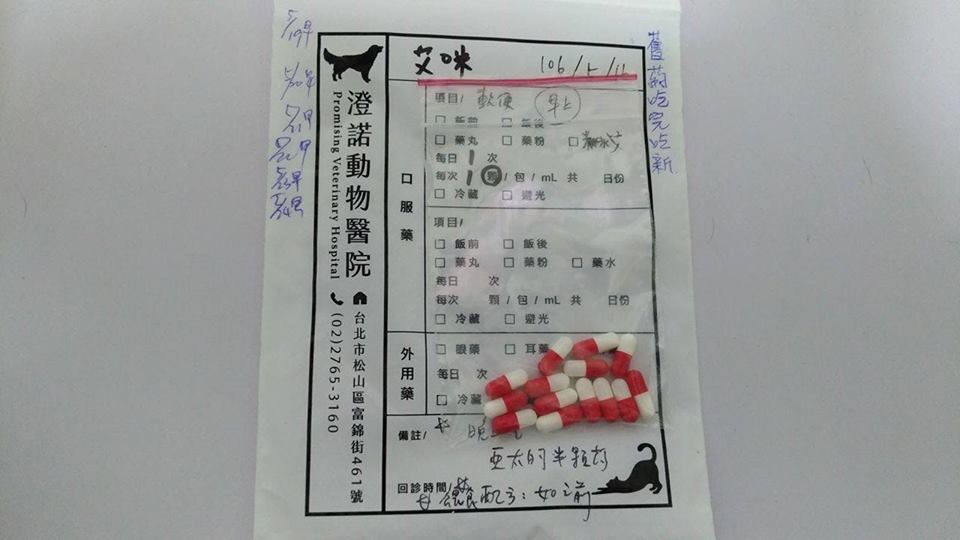 近日有照顧員反應,艾咪能不能吃多一點。詢問過醫生的意見後,可以早晚先加15【顆】的飼料試試看,飼料也有助腸胃蠕動,也請照顧員觀察,如果艾咪吃乾飼料,卻不吃罐頭,或者吃罐頭量變少,請把飼料拿掉。