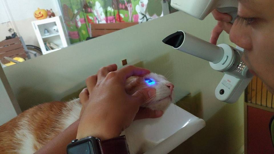 上週回診,有發現溫泉君左眼球有潰傷,這禮拜再看,覺得傷口有在癒合,完全癒合需要耗時約1個月左右,即使癒合也會有一個疤在那邊。點必效請繼續點,點到快癒合就可以停。