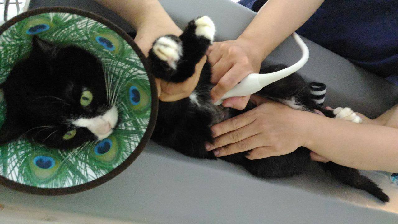 裝設食道胃管後,麵滷因為舔毛而吃進太多自己的毛,