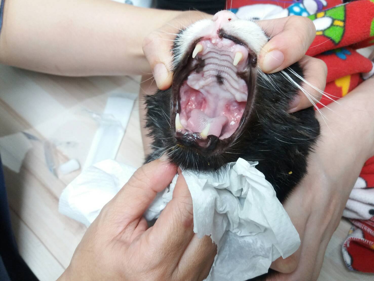 麵滷今天口腔檢查,發現後口部分又開始紅腫。