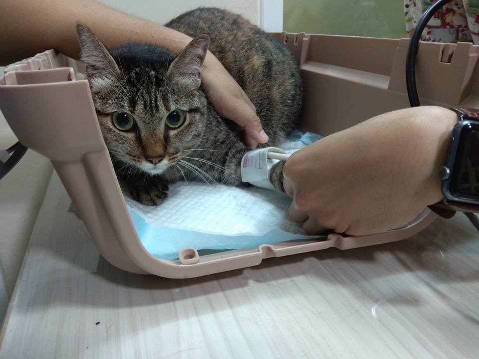 是民眾通報被鐵門壓到頭的小貓,緊急送醫治療後救回一命,