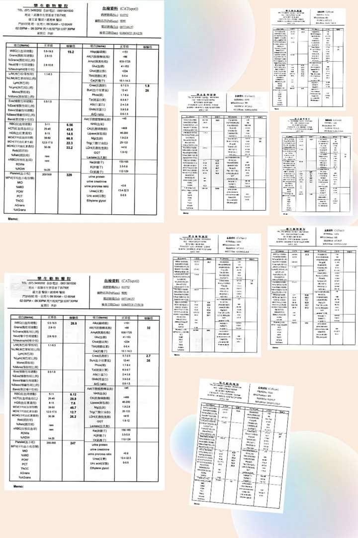 咪咪狀況很糟,一開始必須每天清創,傷口好點之後就2~3天清創一次,前期咪咪有軟便,傷口慢慢的比較好,指數也持續恢復,因為咪咪還沒結紮,待狀況比較穩定時順便一起結紮。之後咪咪傷口雖好的差不多但雙前腳還腫脹,尾巴部份還有黴菌,所以出院後持續吃藥、擦藥中。動物近況說明: 咪咪費用如下: