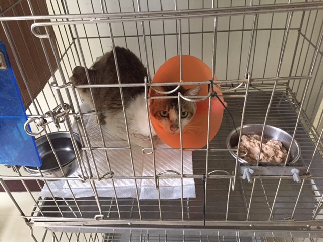 7/18(二)探視狀況:小花花食慾不佳,幾乎不吃乾糧,僅吃沒有拌抗生素藥粉的罐頭,醫生改以每日施打抗生素取代吃藥。