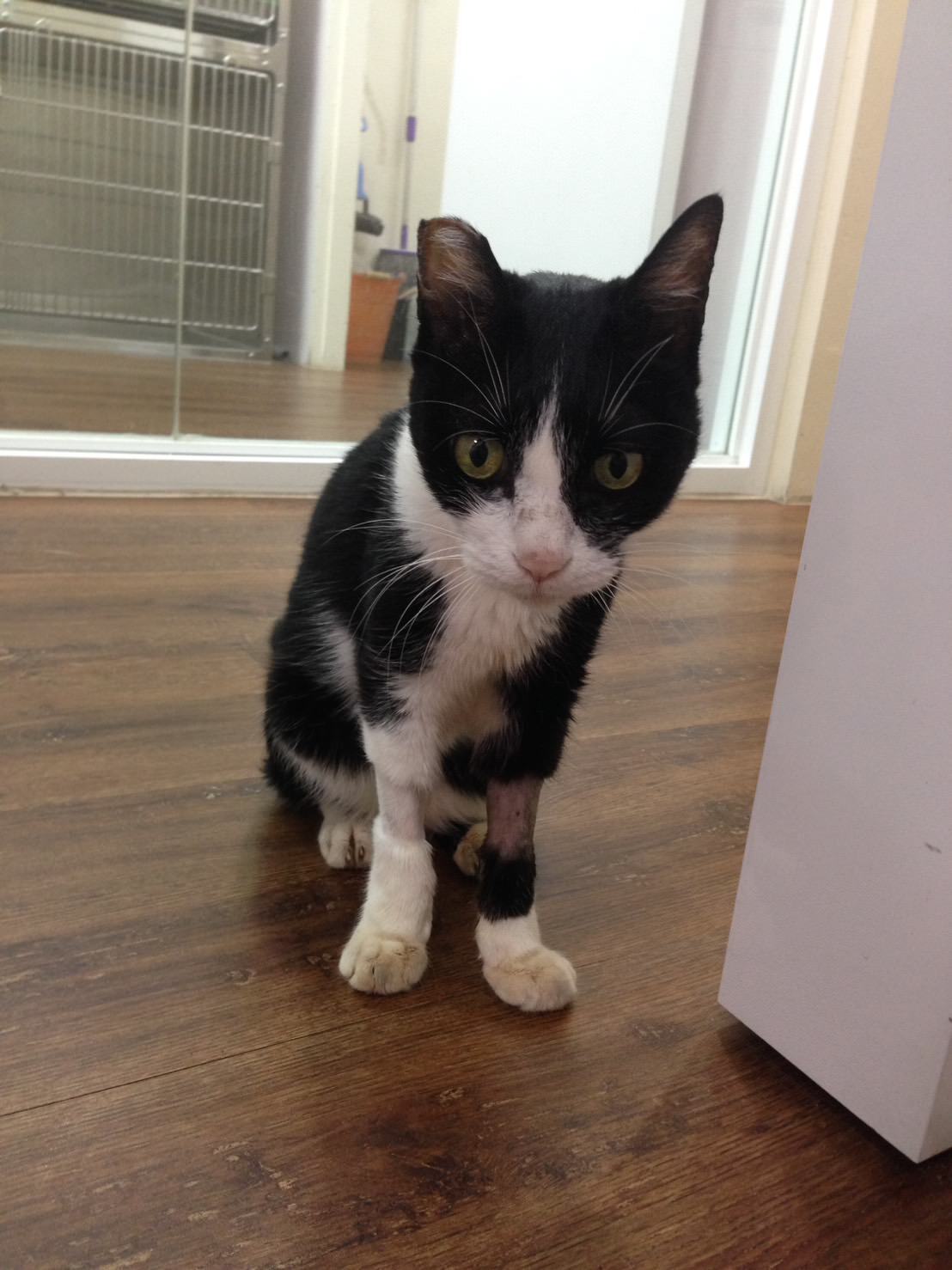 主題: 因貧血、腸炎脫水而無法進食暴瘦的12歲街貓 申請者姓名: Jasmine Lee 花色: 申請日期: 2017-08-12 16:27:49 申請者部落格: 申請者臉書網址: https://www.facebook.com/jasmine.lee 所在縣市/合作醫院: 台北市/極光動物醫院 治療費用: 45441元 需求人數: 48人 已結案 (2024-06-01 13:25:33) 報名人員: 宸瑜(已付款)、Emily Kuo(已付款)、黃大喵(已付款)、Melody Cheng(已付款)、Fish(已付款)、HSU OG(已付款)、ray(已付款)、Rose Lin(已付款)、劉熊妹(已付款)、呂佑佑(已付款)、林妮妮(已付款)、郭立偉(已付款)、ali x2(已付款)、Egg Icecream(已付款)、jill姨(已付款)、Mikan(已付款)、Melody Tsai x5(已付款)、薇薇安(已付款)、RAVEN(已付款)、彭小燕(已付款)、Claire Hsu(已付款)、chucl(已付款)、Satie Tang(已付款)、咪寶寶的阿木 x5(已付款)、Yupei Hsu(已付款)、盧丁丁 x4(已付款)、厚(已付款)、菲小比(已付款)、evelyn.lin66(已付款)、文大推廣部&華岡興業基金會同仁 x7(已付款)、 候補人員: 動物病情說明: 蝙蝠俠是一隻超過12歲的街貓, 平日的餵養人表示貓咪食慾變差的情況已有兩周以上, 原本身材圓潤將近4kg的她, 暴瘦1.5kg, 瘦到背部脊椎骨都清晰可見。