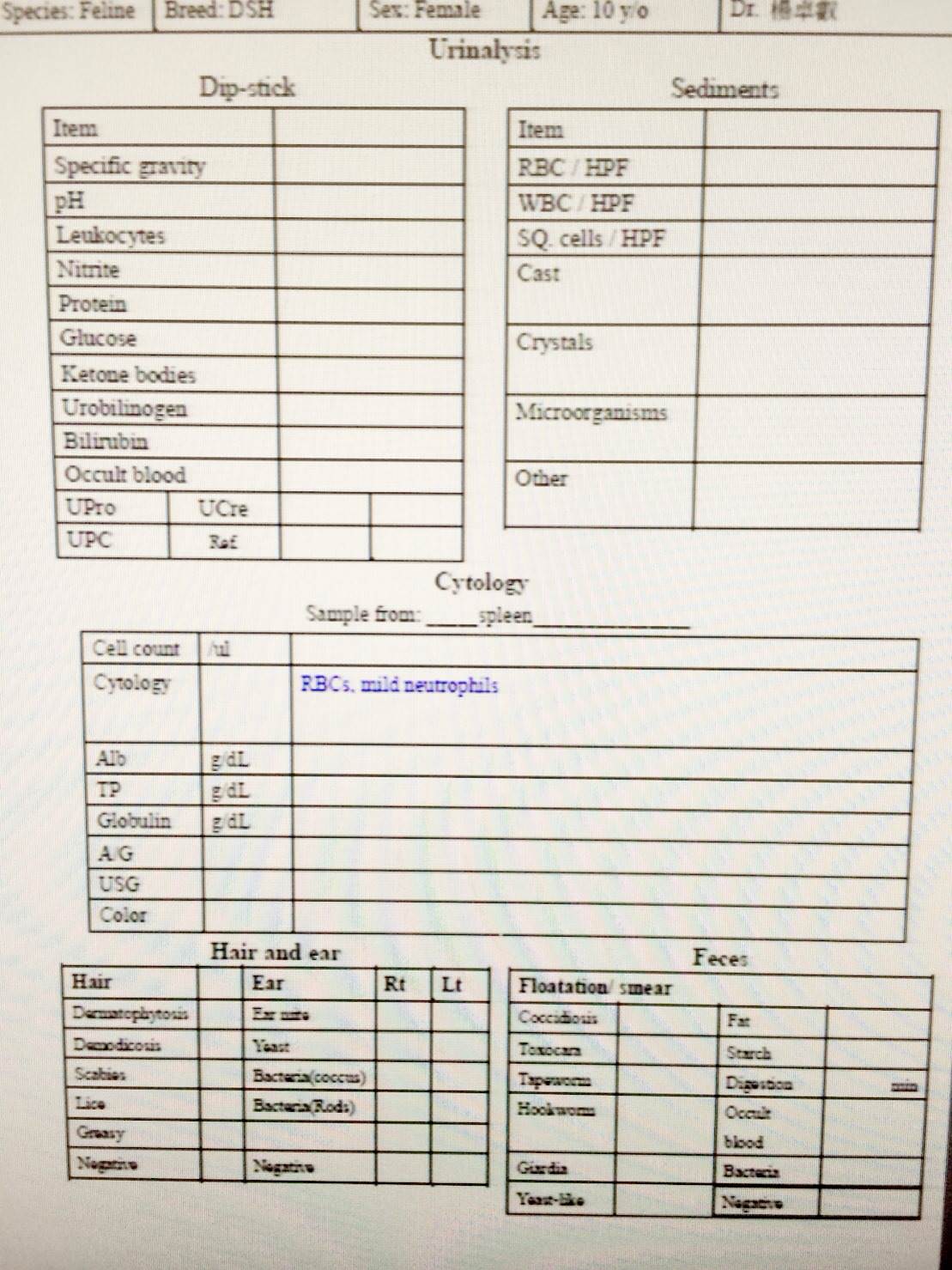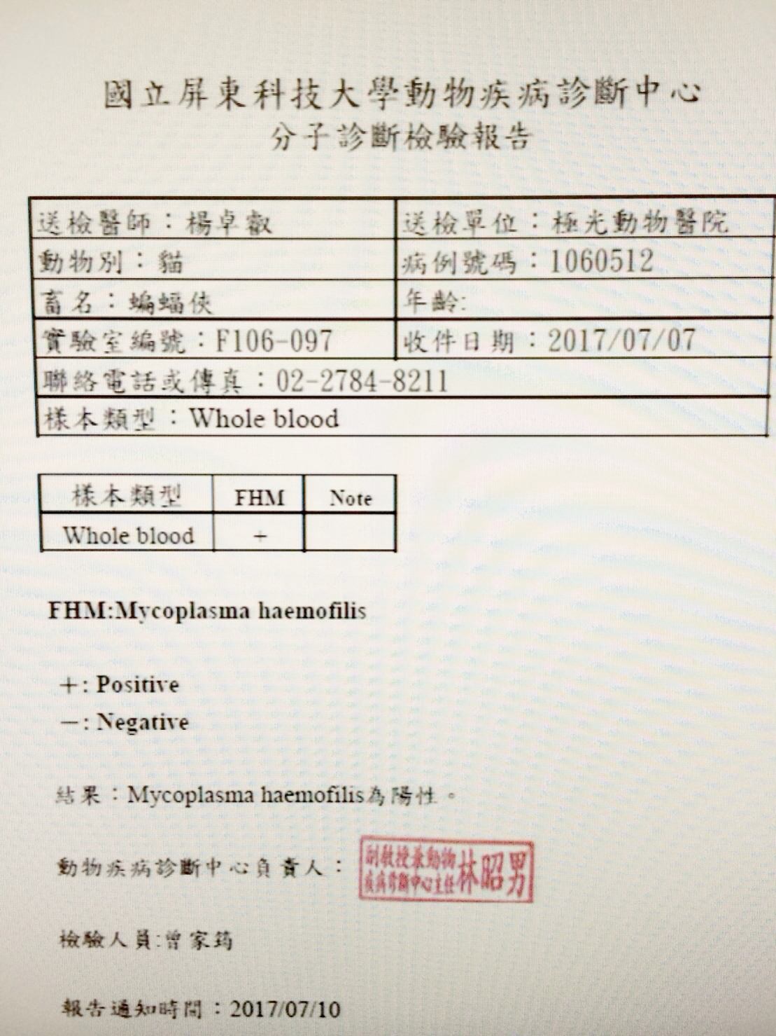 血檢報告:
