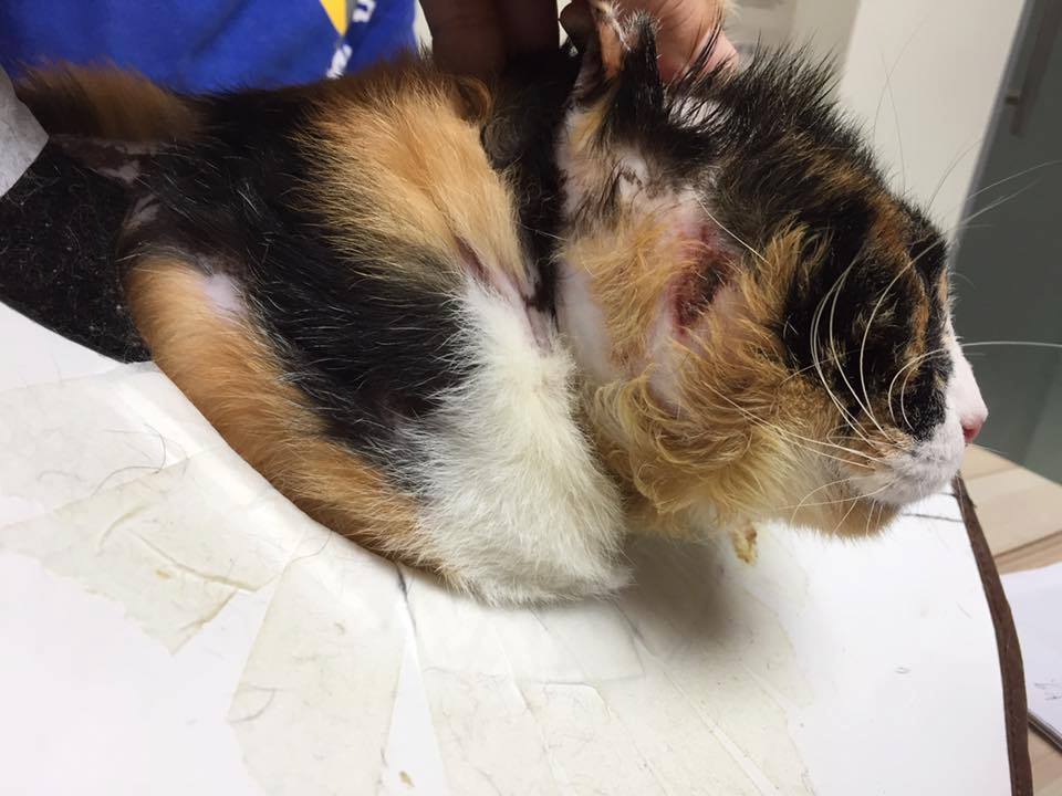主題: 因化學藥劑潑灑,需長期服用類固醇並追蹤治療的花嬸 申請者姓名: 臺北市支持流浪貓絕育計劃協會 花色: 申請日期: 2017-07-26 13:54:17 申請者部落格: 申請者臉書網址: 所在縣市/合作醫院: 台北市/澄毅動物醫院 治療費用: 2340元 需求人數: 6人 已結案 (2024-06-01 13:25:30) 報名人員: 宋小冠(已付款)、children x3(已付款)、島本小姐(已付款)、nami(已付款)、 候補人員: 動物病情說明: 花嬸臉上及身上有著大片面積的灼傷,