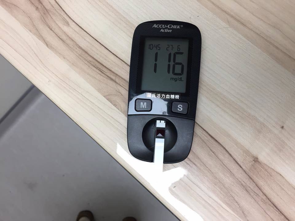 傷口狀況復原良好,今日血糖116 mg/dL,