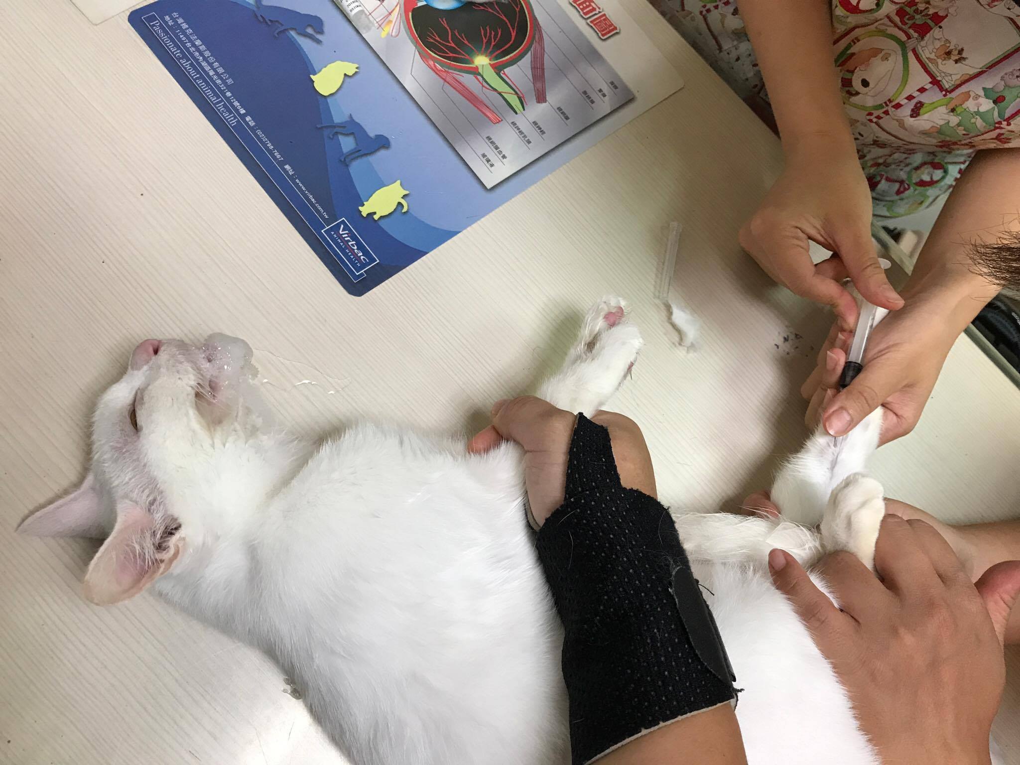 頸部有食道胃管的縫合傷口,請注意白親親是否有搔抓。