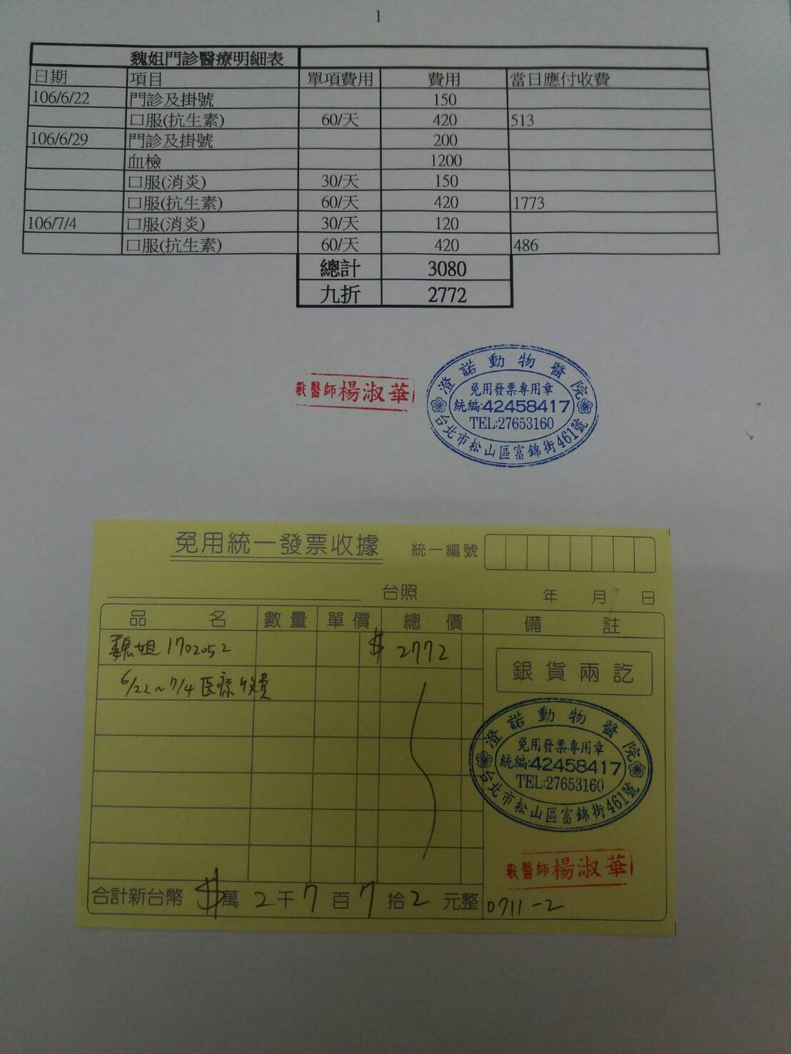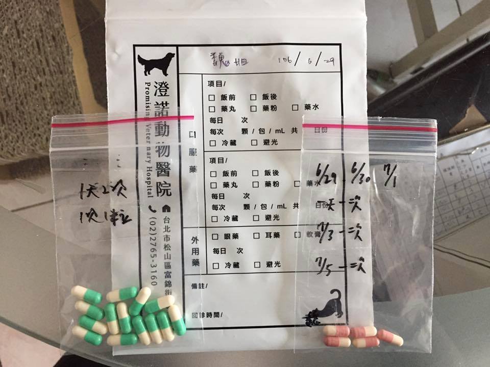 醫師給予一周的抗生素服用,餵食時請額外注意一下魏姐的食慾狀況及鼻孔鼻涕狀況。