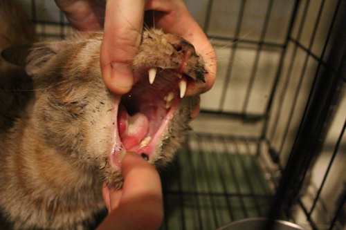 主題: 舌頭潰爛流口水的灰撲撲橘子貓 申請者姓名: Star Wang 花色: 申請日期: 2012-08-12 23:20:21 申請者部落格: 申請者臉書網址: http://www.facebook.com/star.wang2 所在縣市/合作醫院: 新竹市/新竺動物醫院 治療費用: 3500元 需求人數: 9人 已結案 (2012-12-02 00:43:26) 報名人員: Elin Chao(已付款)、艾小潔(已付款)、Kimmy Liao(已付款)、跑車二姐(已付款)、Vincent Ho(已付款)、Nancy Tai(已付款)、jolin lin(已付款)、OLivia Lee(已付款)、林白兒(已付款)、 候補人員: KO.PON、小舟、 動物病情說明: 之前TNR的貓咪,於七月份餵養時發現不斷流口水,
