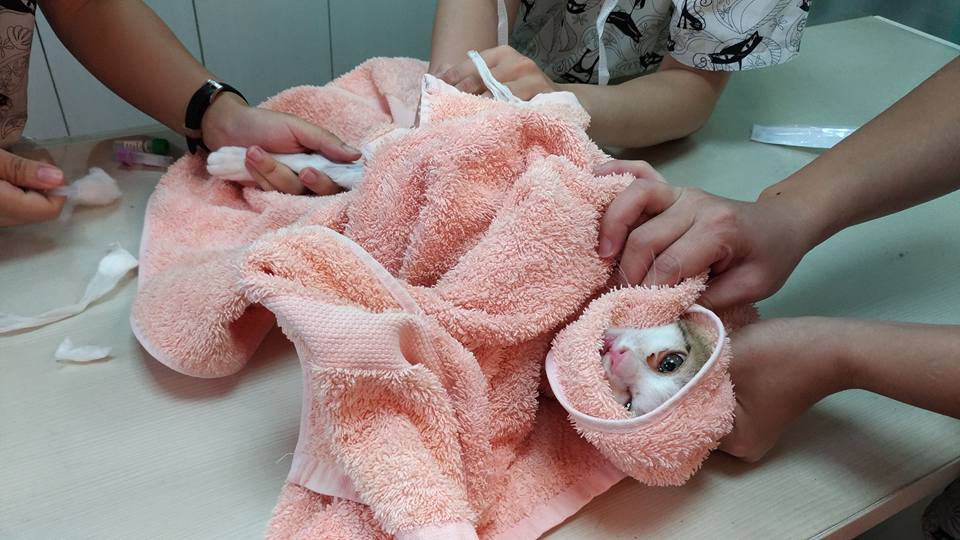 但員工因擔心母貓吃下痱子粉、或是小貓黏膠未脫落是否有中毒危險,