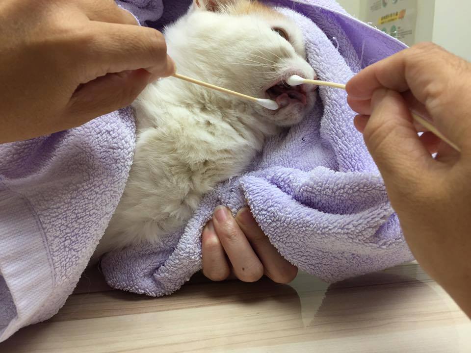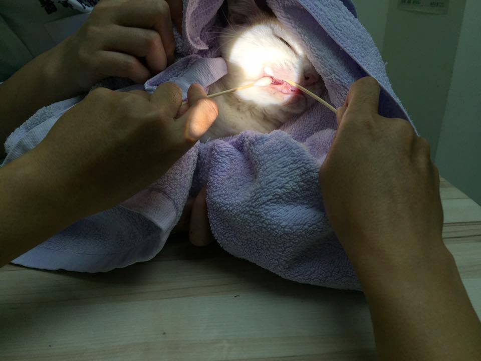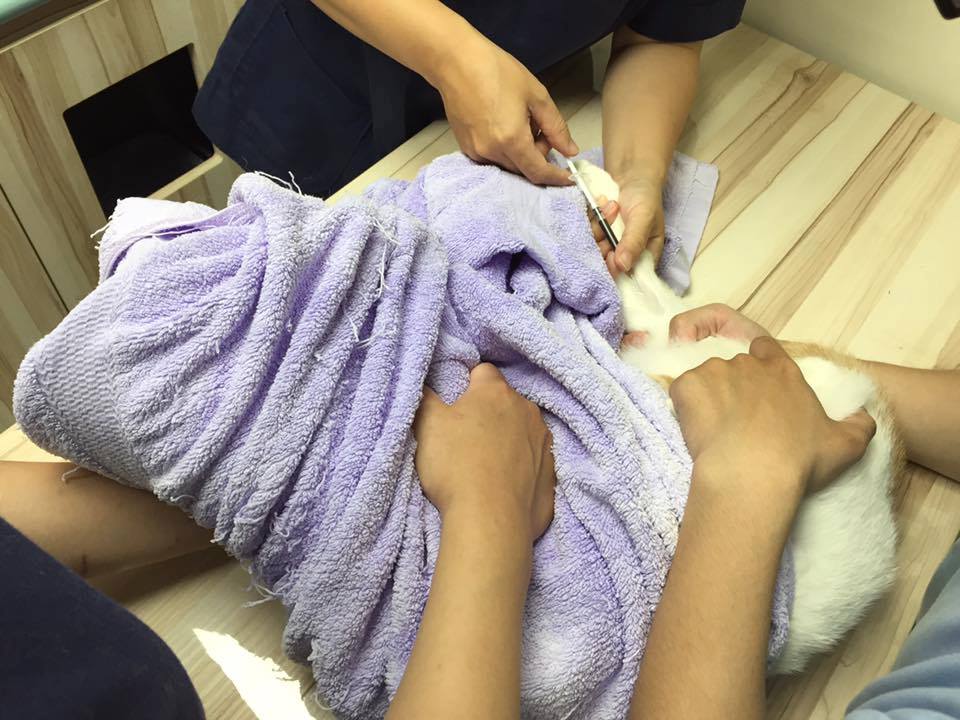 因為蔓蔓個性比較容易緊張,所以看診時需要蓋著毛巾。