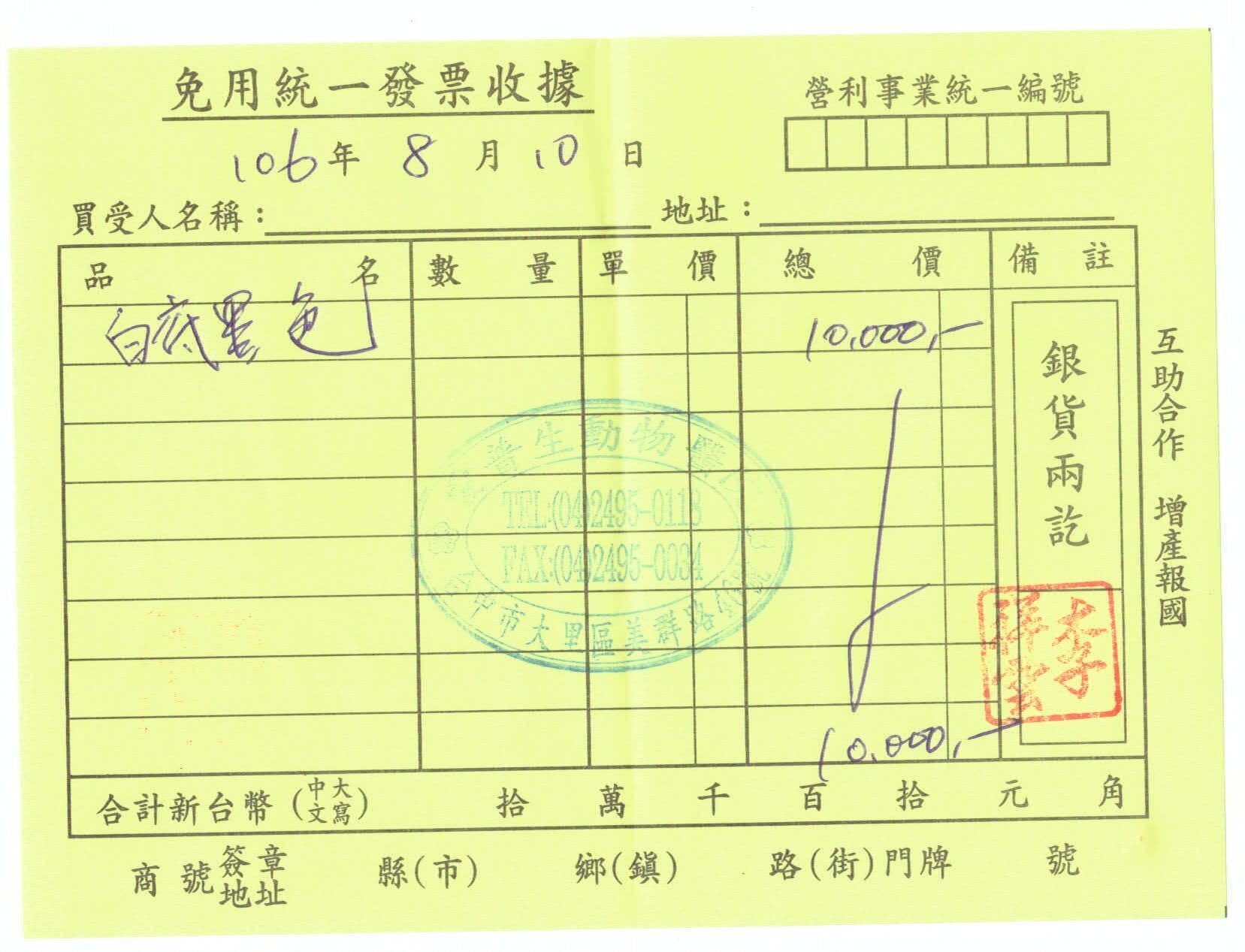 收據可抵稅請將地址mail至cashier@tnrtw.org0912940006763