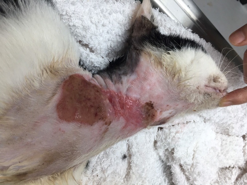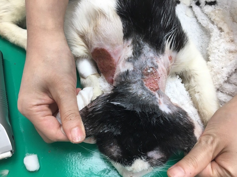 貓咪的大片傷口或許是打架引起,或許是生病導致