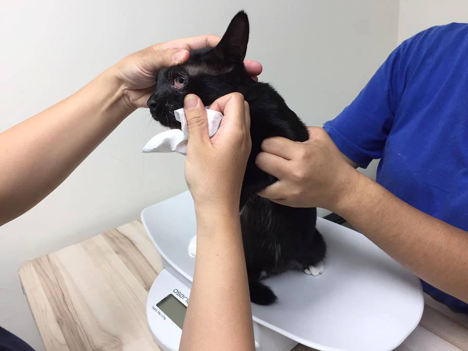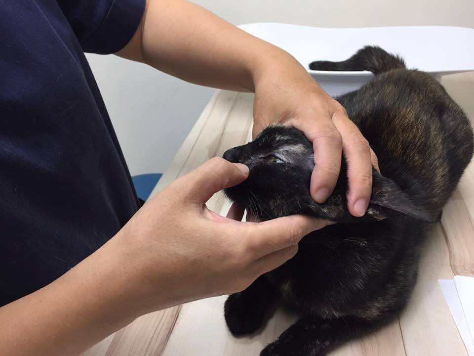 而本次回診是因發現黛咪眼睛周遭有分泌物,且鼻子有鼻涕而帶往治療