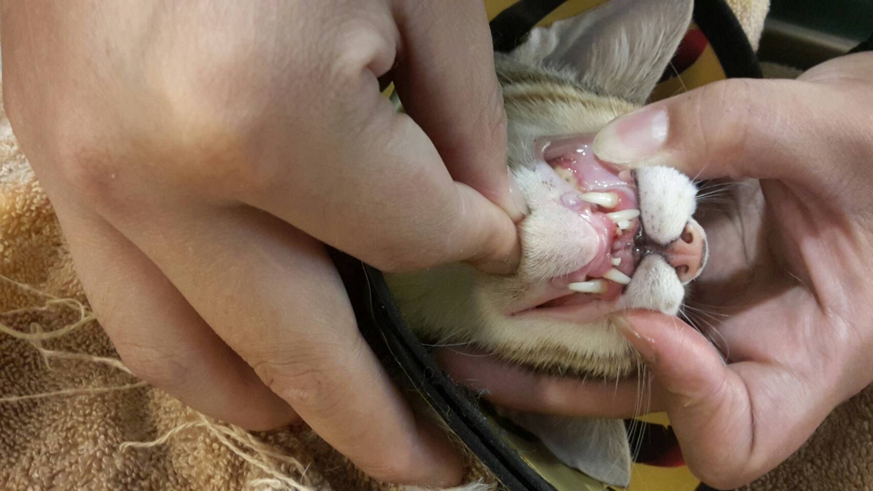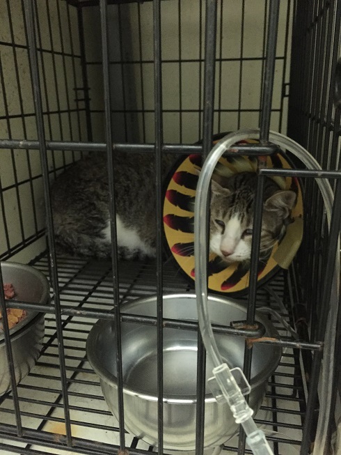 血檢指數還算正常,醫生檢查發現有口炎,尚未需洗牙拔牙,先以類固醇治療,等食慾恢復正常,再觀察一陣子,沒問題後再結紮。動物近況說明: 住院4天後先帶回中途休養2星期左右,再行結紮,結紮住院時間也有增加,確定完全康復後再出院